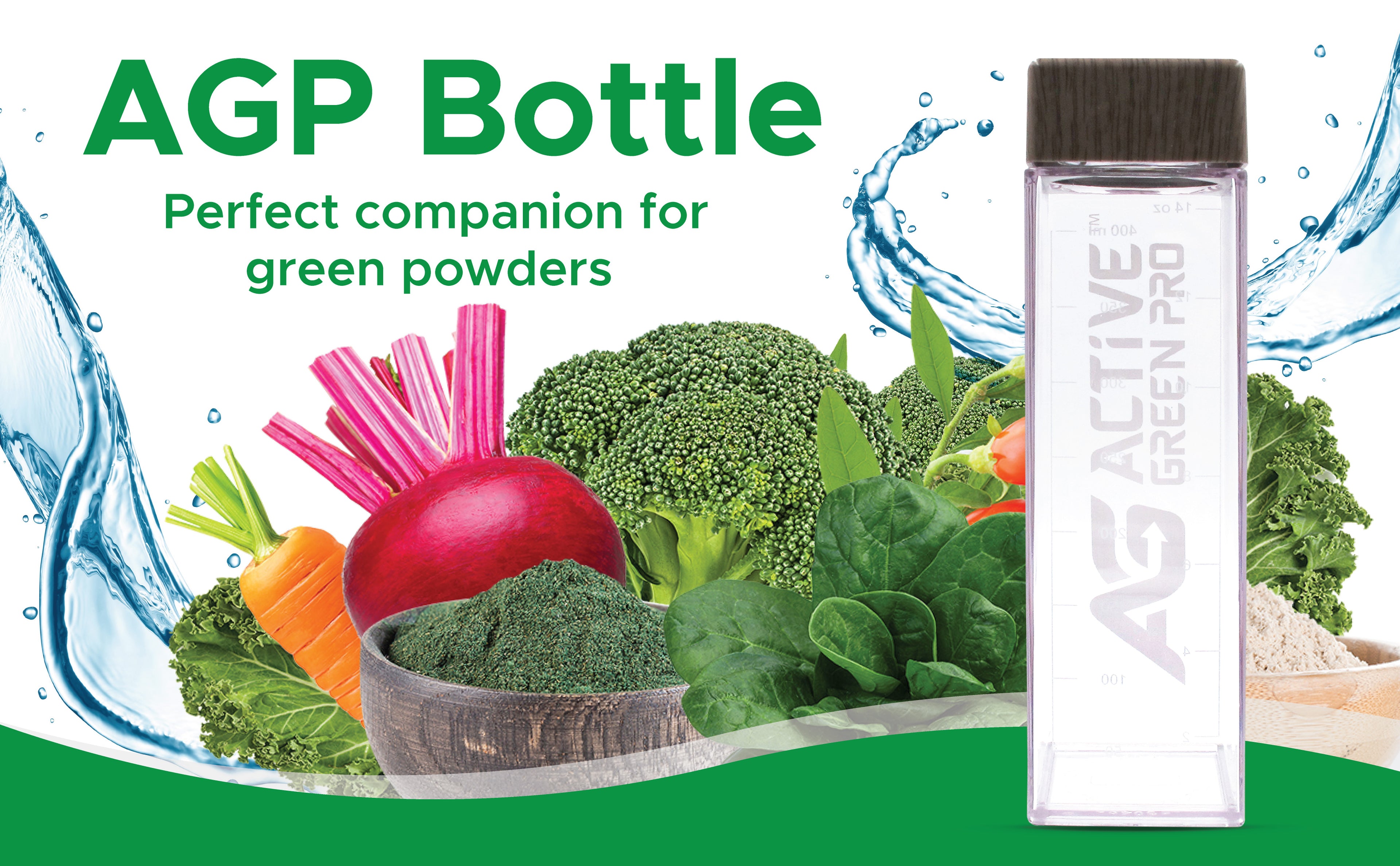 Our AGP bottle is more than just a container—it’s your go-to solution for enjoying the benefits of your favorite greens powder wherever you are. Designed for practicality, durability, and convenience, it’s the ultimate hydration accessory.