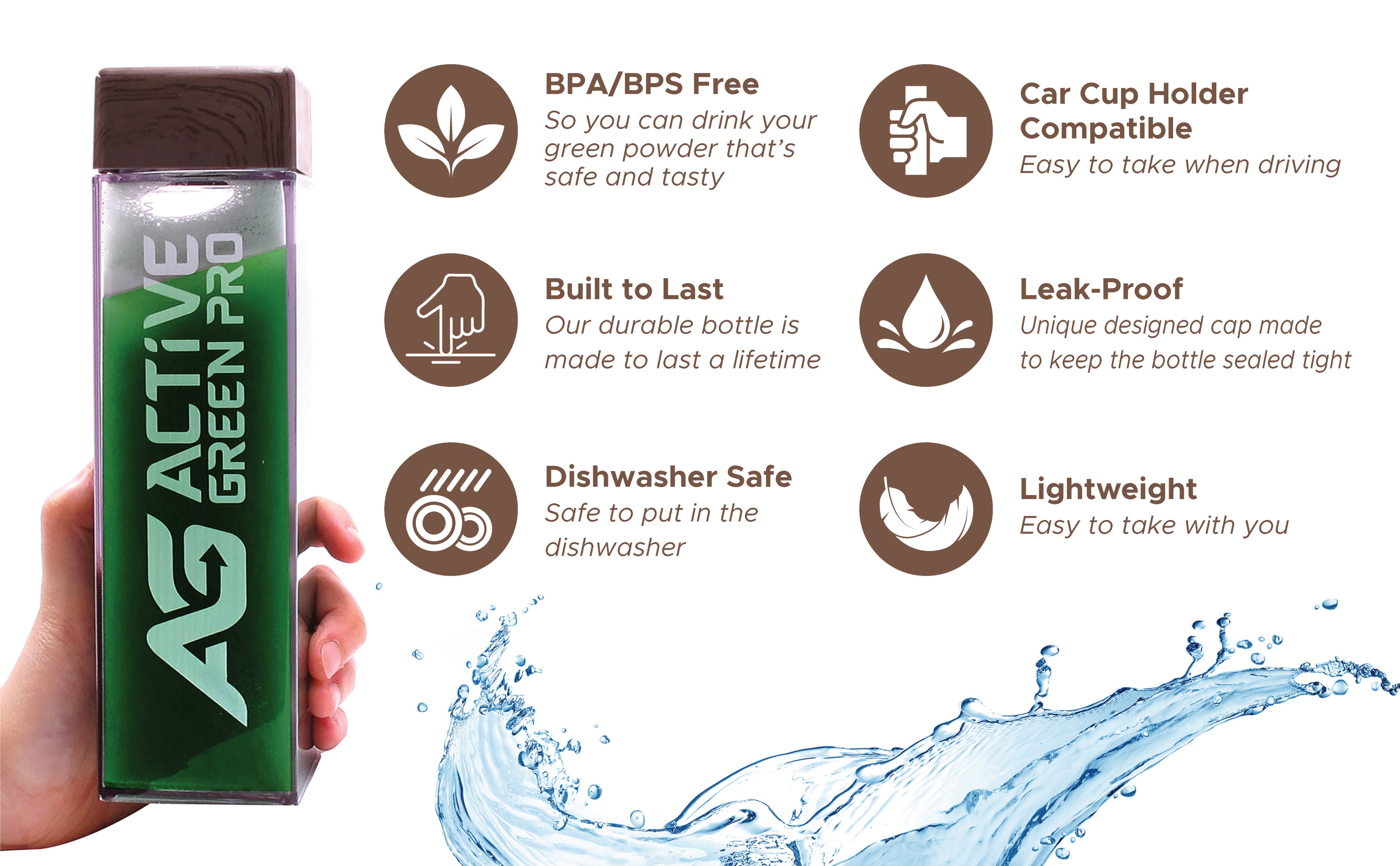 Elevate your daily routine with the Active Green Pro Bottle, thoughtfully designed to complement your greens powder and keep you refreshed on the go.